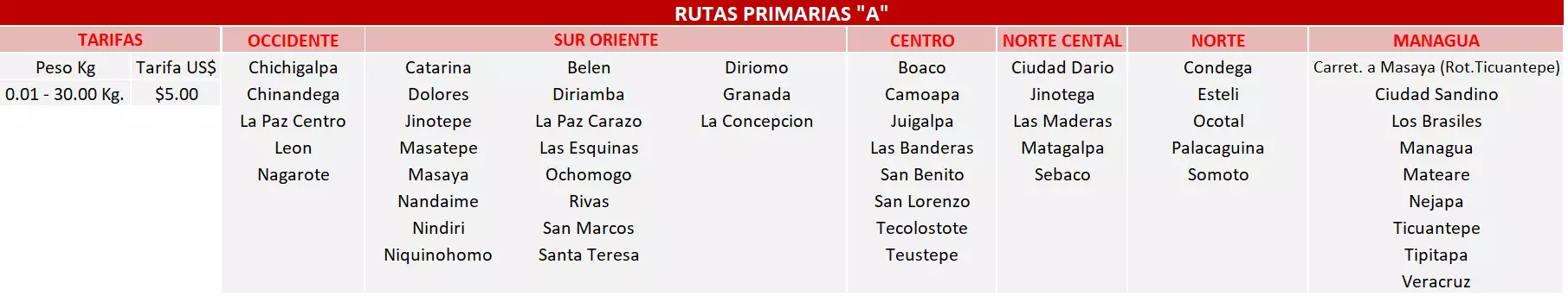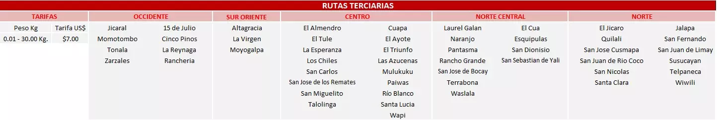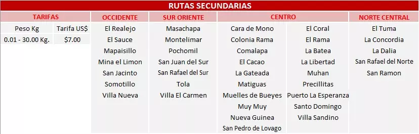 Fuera de Managua ver tabla de precios.